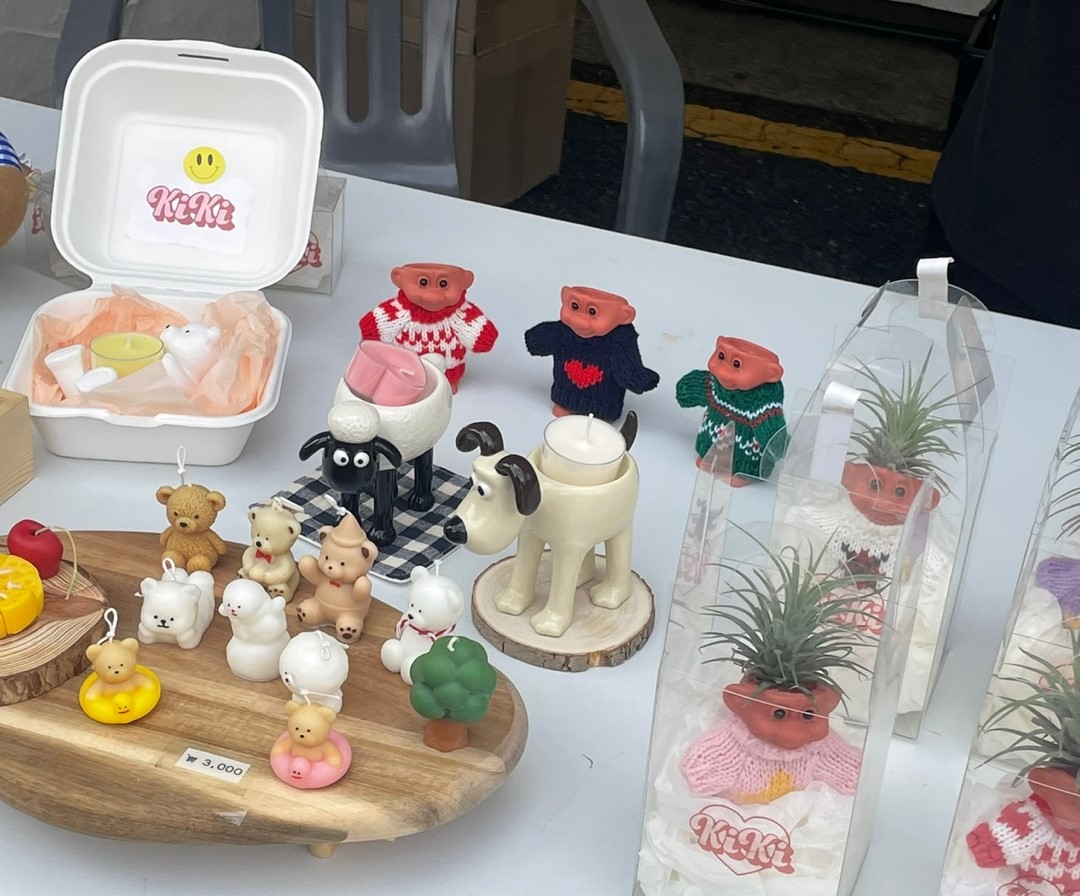 오브제 아뜰리에제스모나이트로 만든 화분속에 야자활성탄과 이오난사를 심어 판매, 악세사리 미니 트레이, 핸드메이드 그립톡(거울 그립톡), 내가 직접 색칠해 가져가는 냉장고 자석, 생화를 더한 화병 , 제스모나이트와 굴껍데기로 만든 도어벨